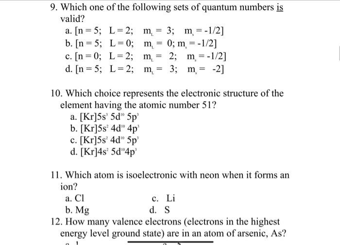 Solved 9 Which One Of The Following Sets Of Quantum Numbers Chegg Com